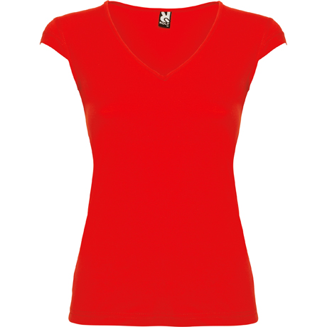 Camiseta de manga corta, con escote en V y acabados realizados con ribete fino. Costuras laterales. Corte entallado.