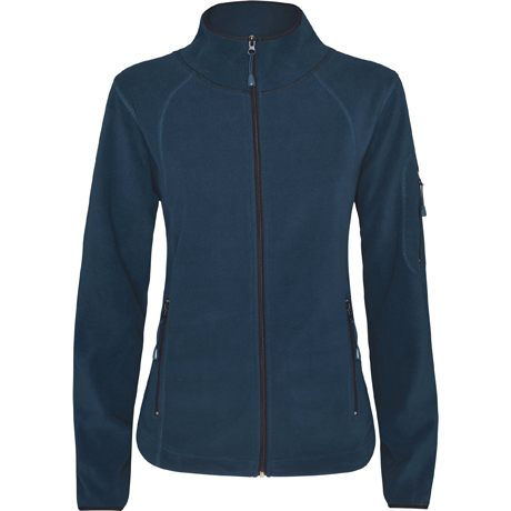 Chaqueta estilo polar para deporte al aire libre, con cuello alto y manga larga con ribetes en contraste. Bolsillo con cremallera en manga izquierda y cremallera central, ambas en contraste. Costuras en lateral y pecho. Codera en el mismo tejido.