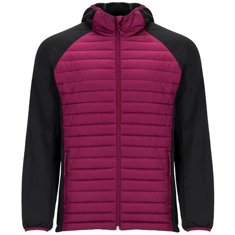 Chaqueta de hombre combinada en dos tejidos: 1. Capucha fija ajustada. 2. Manga estilo ranglán. 3. Tejido softshell en mangas, paneles laterales y capucha. 4. Tejido acolchado tacto pluma en frontal y espalda. 5. Cremallera invertida a tono con protector de barbilla y tirador. 6. Dos bolsillos frontales con cremalleras. 7. Ribete elástico a tono en cuello, puños y bajo.
