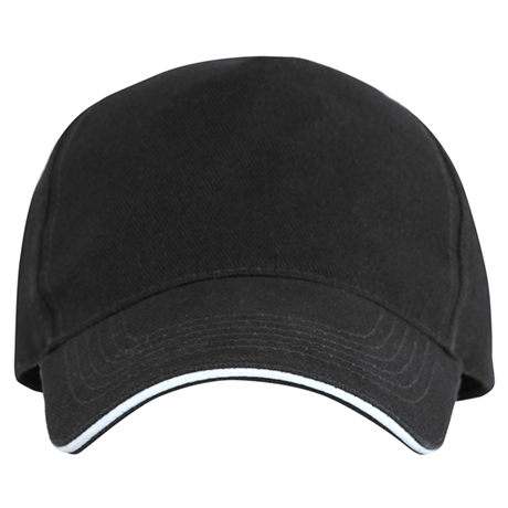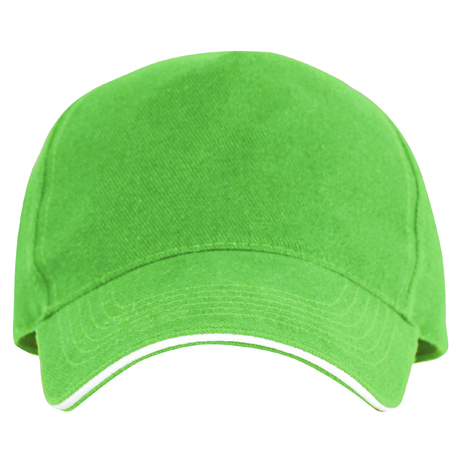 Gorra de 5 paneles con sándwich a contraste. 6 líneas de pespunte en visera. Cuatro agujeros de ventilación. Cinta interior antisudoral. Cierre de velcro.