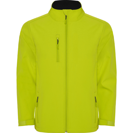 Softshell compuesto de 2 capas. 1.- Cremallera invertida a tono, con protector de barbilla y tirador. 2.- Forro interior en tejido polar. 3.- Bolsillo exterior en pecho derecho con cremallera a tono y tirador. 4.- Dos bolsillos exteriores con cremallera a tono y tirador. 5.- Ajustadores en puño con velcro. 6.- Bajo con cordón elástico y topes.