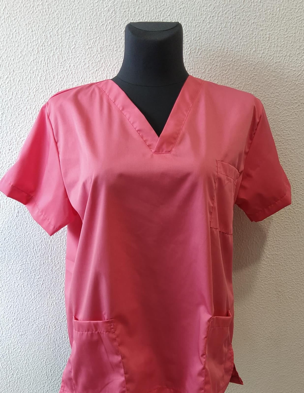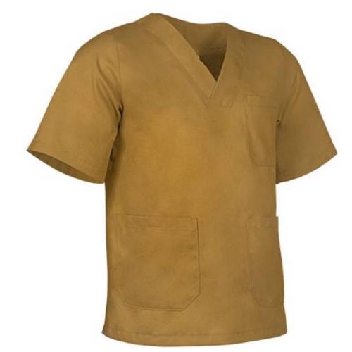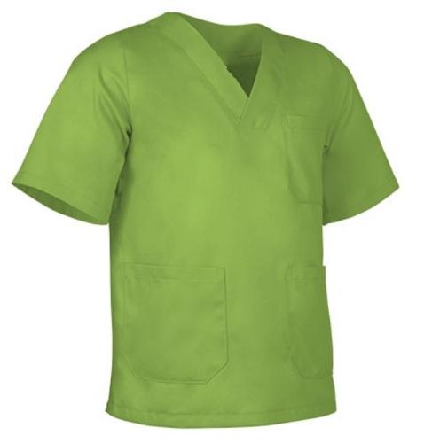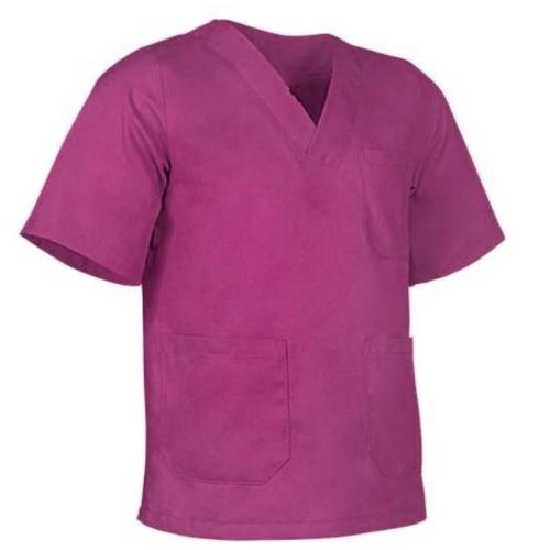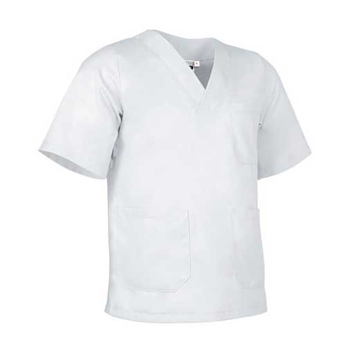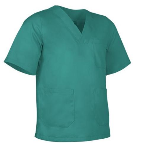 Túnica 65% poliéster 35% algodón. Escote en «V» . En la parte delantera, un bolsillo lateral izquierdo a la altura del pecho y dos bolsillos a la altura de la cadera, espalda recta y manga corta.
