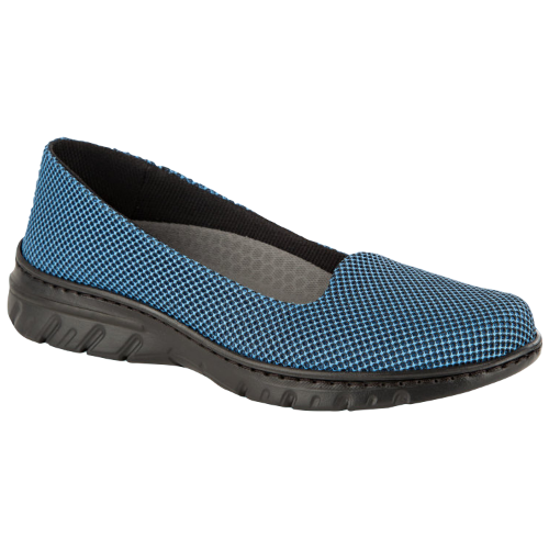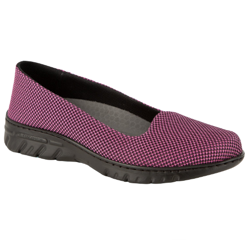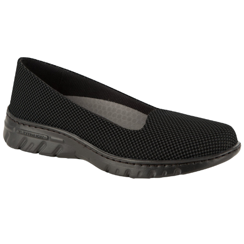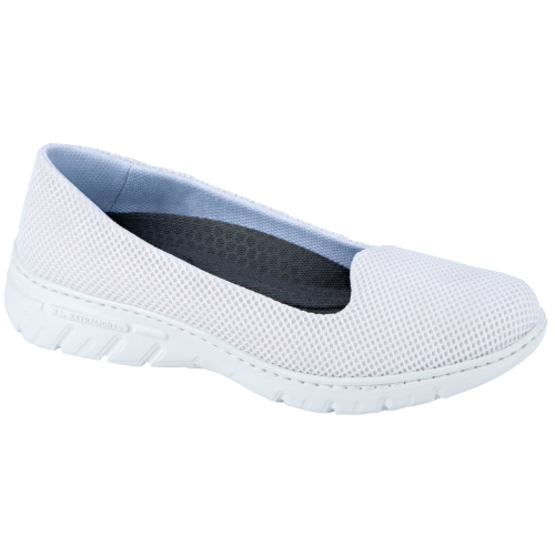 Bailarina con corte de una sola pieza, sin costuras. Corte de rejilla transpirable D’COVER DRY®, forrado interior de material textil acolchado D’DRY®. Horma recta de puntera redondeada. Contrafuerte de dureza suficiente para sujetar el calcáneo. Plantilla acolchada de material textil sobre espuma de poliuretano termoconformado con tratamiento antibacterias y carbón activado. Suela de material compuesto D’LIGHT®, ultra ligera, confortable, flexible y antideslizante, con diseño de pastillas planas, cantos vivos y acanaladuras amplias para facilitar la evacuación de líquidos. Apto para lavado en lavadora hasta 40º.
