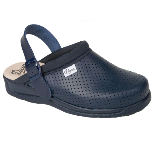 Zueco con correa abatible de sujeción en el talón, fabricado en microfibra técnica perforada con acolchado D’COVER OEKOTEX ® en el empeine para evitar rozaduras, montado sobre horma recta de puntera redondeada. Plantilla anatómica forrada en microfibra técnica con barra metatarsal. Suela antibacteriana de poliuretano en forma de cuña, antideslizante de doble densidad, bicomponente de poliuretano y TPU combinados para aumentar el coeficiente de eficacia antideslizante del zueco.